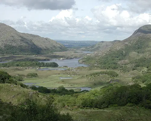 Killarney is a wee town of great tourist interest situated at the entrance to Killarney National Parklands. This reserve, brimming with lakes and forests, is the beginning of the Ring of Kerry, a circular tourist route perfect for unwinding amidst nature. Like most towns in Ireland, Killarney is rich in architectural and historical sights. The town boasts charming architecture and style reminiscent of the late 19th century. The town's main monument is St. Mary’s Cathedral, adorned with mosaics and frescos, it's considered one of the most important and best Gothic Revival churches of the nineteenth century in Ireland. A mere 5 minutes from Killarney Town Centre, you'll find the beautifully restored 15th Century Ross Castle, home to the legendary Gaelic Chieftain O’Donoghue Ross. It overlooks the Lower Lake, the 7th century monastery and a 12th century oratory on Innisfallen Island, situated in the middle of the lake. Take a short dander from the castle on Ross Island and visit the site of the old copper mine shafts. Or simply wander around the picturesque town. Discover its beautifully maintained and colourful shops. When you need a break there's plenty of tea shops, restaurants, cafes and pubs for a drink, meal or snack. The locals are welcoming and friendly, always ready to help and give advice to any visitor. Killarney, with beautiful flower arrangements and freshly painted shop fronts gleaming proudly from every street, is a truly beautiful place simply created for rest and joy.
